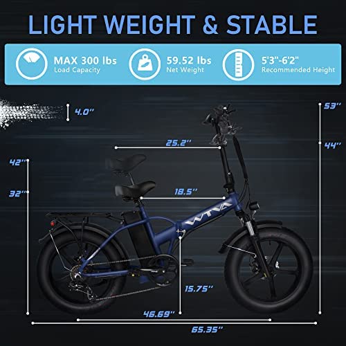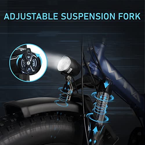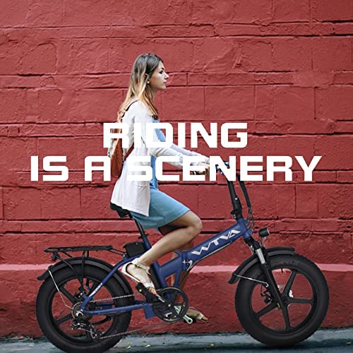 WTVA Electric Bike for Adults 750W 28MPH Fat Tire Folding Ebike 20 Inch Electric Bicycles, 48V 13AH E-Bike with Lockable Suspension, Shimano 7-Speed, Mountain Beach Cruiser Ebikes