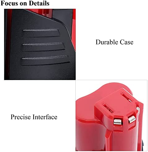 Capacity: 6000mAh | Voltage:12V | Type:Lithium-ion | Replacement for Milwaukee M12 battery 48-11-2401, 48-11-2460, 48-11-2411, 48-11-2412, 48-11-2440, 48-11-2420, 48-11-2430, 48-11-2402.