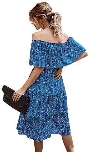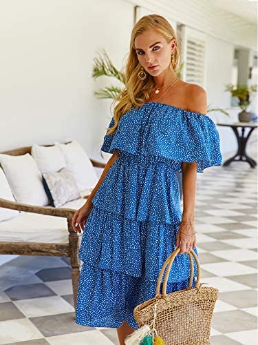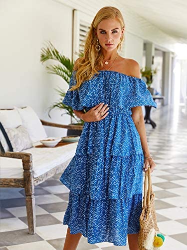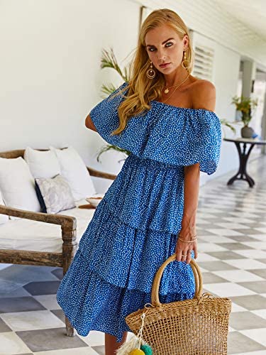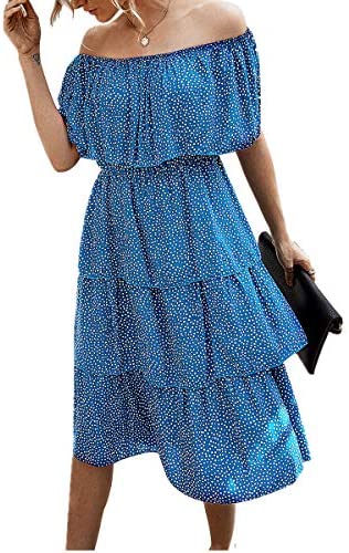 Yooshare Girls’s Cute Off the Shoulder Ruffle Gown Summer season Informal Polka Dot Print Maxi Clothes