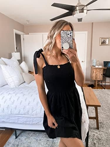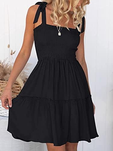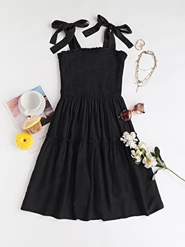 ZESICA Solid Color Tie Strap Sleeveless A Line Mini Dress Summer White Dress