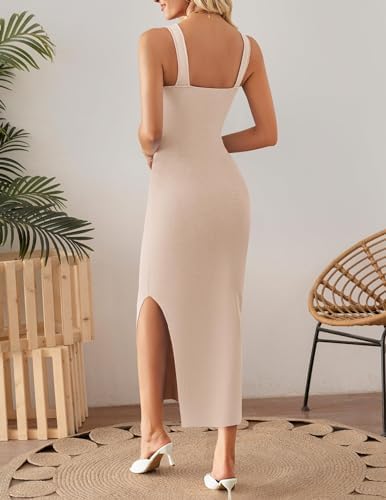 ZESICA Womens Square Neck Backless Solid Color Knitted Beach Vacation Maxi Dress