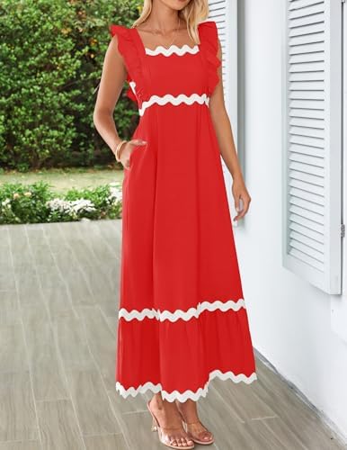 ZESICA Casual Square Neck Sleeveless Maxi Sundress with Pockets