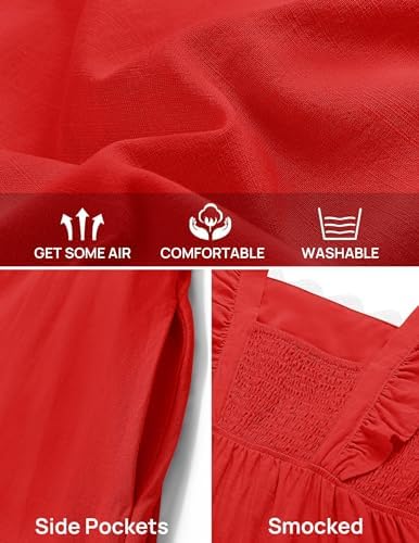 Womens Square Neck Party Flowy Swing Beach Vacation Maxi Dresses with Pockets